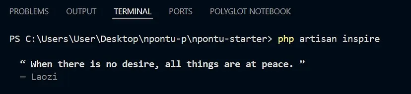 And honestly, even small moments stand out. Like when I ran php artisan inspire and got this quote: